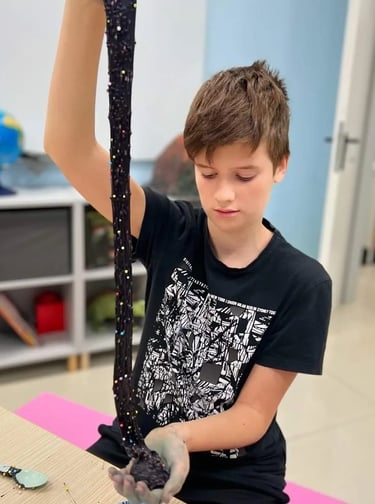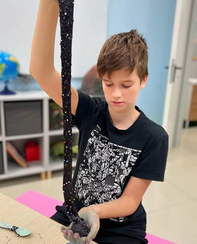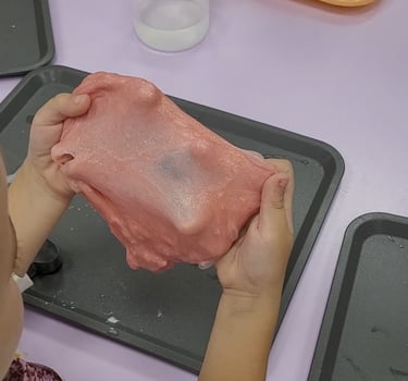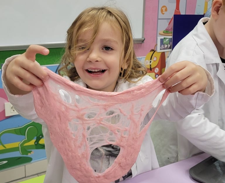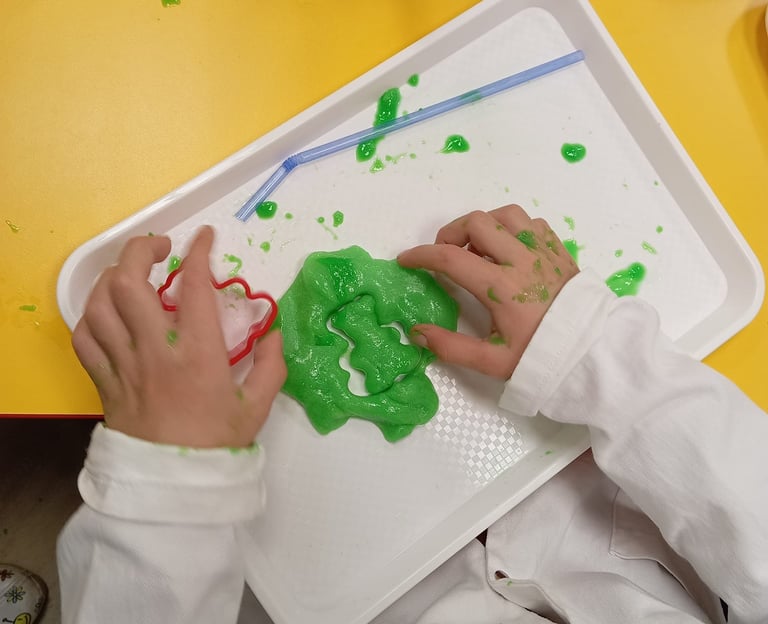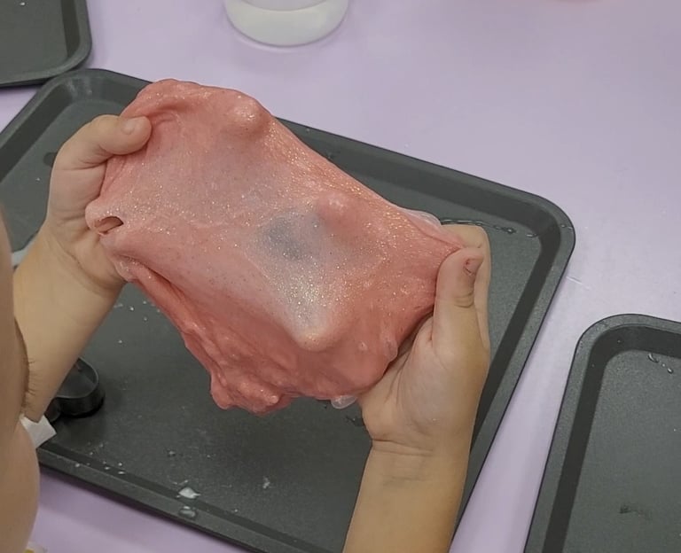 🎨 Játék a slime-mal- Nyújtjuk, formázzuk, buborékot fújunk és megfigyeljük, hogyan viselkedik a saját alkotásunk – igazi tudós módjára!